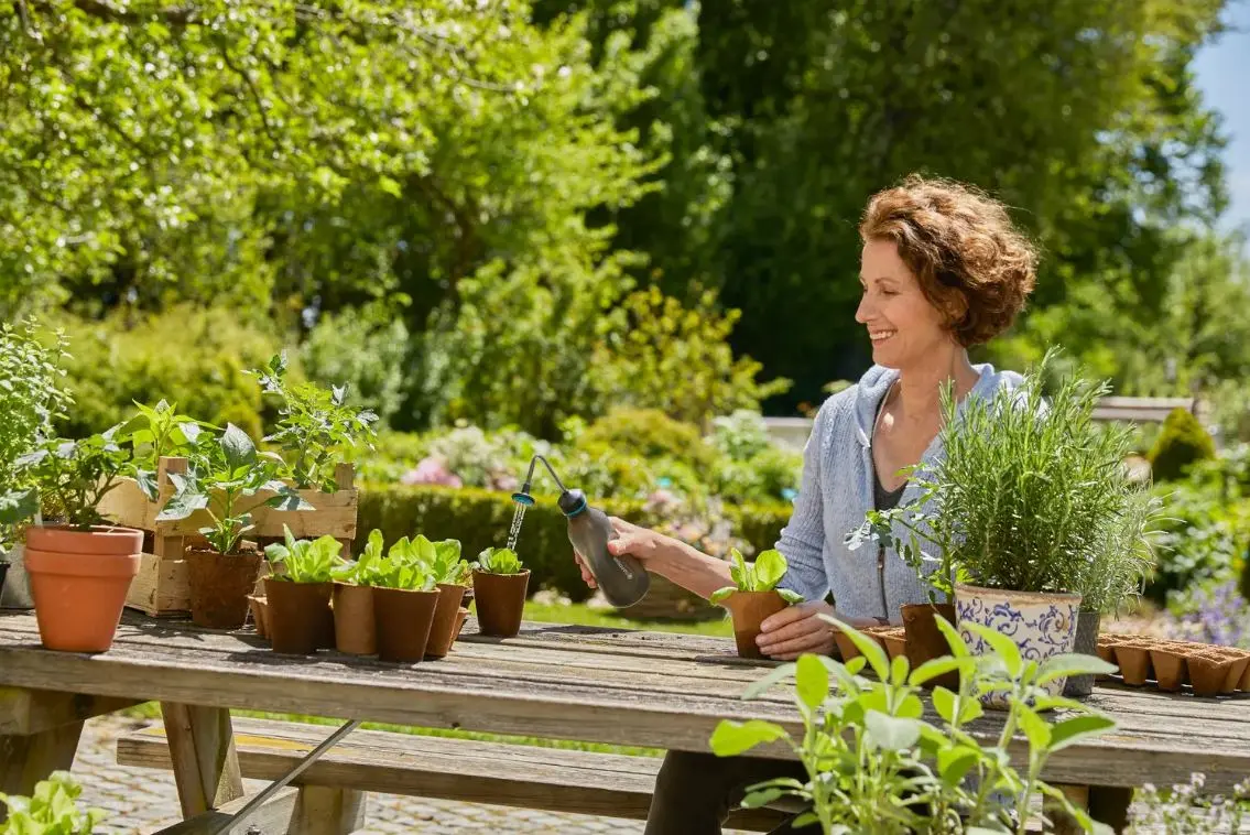 - Met de fijne sproeier kun je je zaailingen gericht en voorzichtig van water voorzien, door druppels of door sproeien, wat ook voorkomt dat kleine planten en aarde wegspoelen