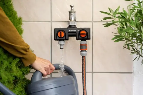 - De 2-wegverdeler van GARDENA wordt gebruikt om twee apparaten tegelijkertijd op één kraan aan te sluiten